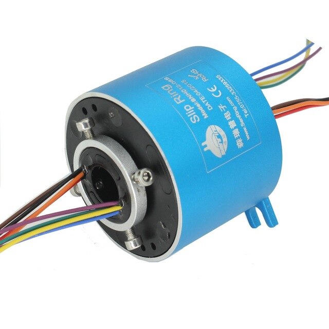 Through hole slip ring also called hollow slip ring with center hole. it could be applied to any devices where requires to transmit power and signals when need 360° rotating. Features Advanced multi-point contact brush technology ensures reliable contact with low friction; Metal housing for better protection; Integrated structure design, easy installation. Hole size from 3mm to 300mm optional; Standard current: 0~20A,Standard voltage: 0~600VAC/VDC; Circuits No.: 0~300 circuits optional; Customization's acceptable for circuits no. , current& voltage based on standard models